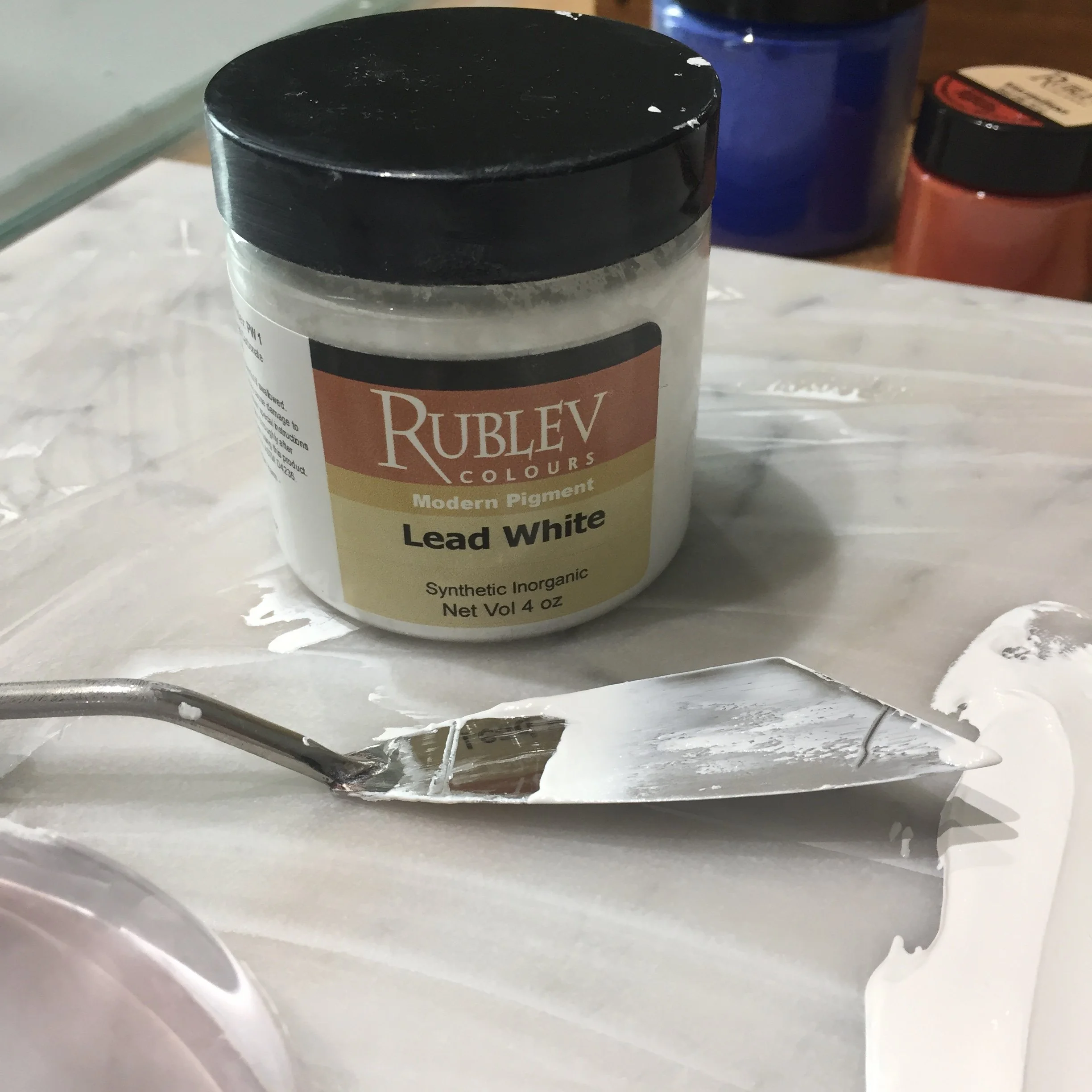 Lead white is one of the oldest pigments used in painting. Because of the toxicity of lead, it can be very hard to come by from the large manufacturers. Through Rublev, we are able to acquire the dry pigment. Be sure to wear a high quality mask while the pigment is in dry form.